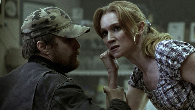 Rockwell plays John Moon, an unemployed hunter whose wife has recently left him and wants a divorce and custody of their young son. Previously arrested for poaching, Moon continues to press his luck by stalking a deer out of season and shooting it. One of his random shots happens to hit and kill a young woman in the woods who was hidden behind some foliage. At first overcome with remorse, Moon re-evaluates his situation and decides to hide her body. In the process, he comes across a shack where she was squatting and discovers a box filled with mucho dinero inside. What does he do? He steals it and returns home to stash the loot in a hiding place. Not a good plan. Everything that happens from this point on is on par with the nightmarish, amoral universe of a Cormac McCarthy novel like No Country for Old Men.