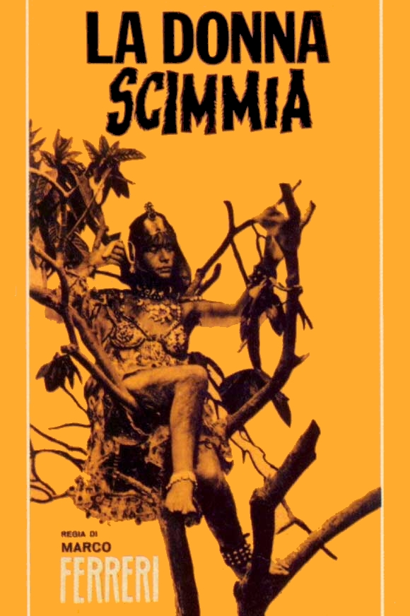I can remember being fascinated with Marco Ferreri’s The Ape Woman (La donna scimmia) from the first time I saw a still from it in the May 1964 issue 28 of Famous Monsters of Filmland. A woman wearing eye makeup and sporting a beard and hairy legs poses provocatively for the camera while her mate, either a man in a tacky ape costume or a prop gorilla, rests his head in her lap. The photo description, “Beauty (?) and the Beast make a hairy horror pair in THE APE WOMAN,” was the only information offered about this upcoming release and, since it was being featured in FFofF, I assumed it qualified as fantasy cinema.
