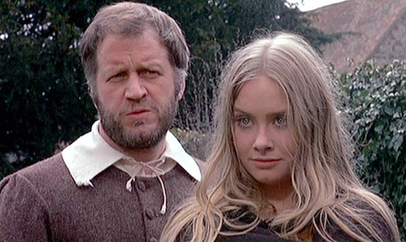 Because of the limited budget, Haggard assembled a cast of mostly unknown actors who were working in television and theatre with the exception of well known character actor Patrick Wymark who had previously appeared (playing Cromwell) in Witchfinder General. (He is also famous as the predatory landlord in Roman Polanski’s Repulsion [1965]). The only other actor audiences might have recognized was Linda Hayden who had attracted some notoriety for her role as the teenage nymphet in Baby Love (1968) and for her appearance opposite Christopher Lee in Taste the Blood of Dracula (1970).