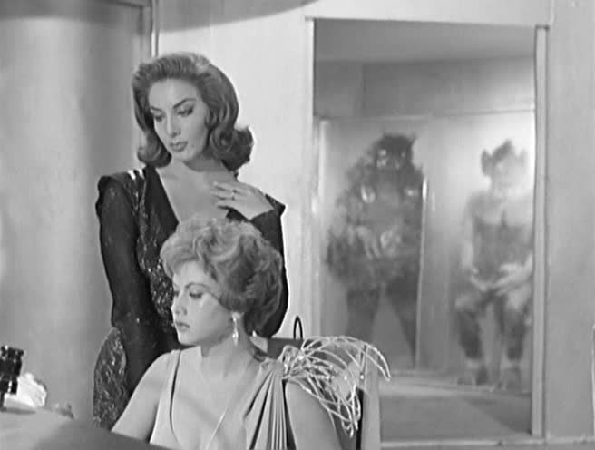 La-nave-de-los-monstruos Published April 3, 2016 at 656 × 496 in The Strange Mating Rites of Venusians Beta (Lorena Veláquez, left) and Gamma (Ana Bertha Lepe) man their spaceship while various alien specimens hover in the background in The Ship of Monsters (1960)