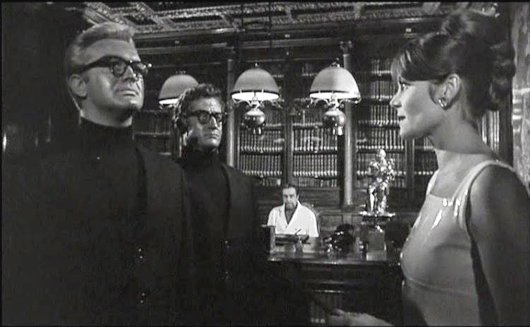 Cartes sur table (1966) Published March 10, 2017 at 749 × 463 in Jess Franco’s Attack of the Robots Two mind-controlled humanoids receive instructions from Lady Cecilia (Francoise Brion) as her husband Sir Percy (Fernando Rey) observes in the background in Attack of the Robots (1966), directed by Jess Franco.