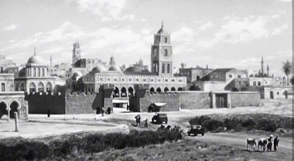 A matter painting backdrop is typical of the exotic studio bound sets in Jacques Tourneur’s Timbuktu (1958)