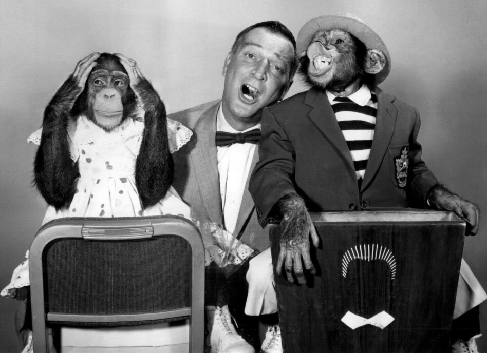 Garry Moore & The Marquis Chimps, circa 1959 Published May 28, 2017 at 948 × 688 in Reelin’ in the Years with Buck Henry Garry Moore & The Marquis Chimps, circa 1959