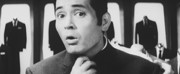 Shinji Kikyo (Tatsuya Nakadai) adjusts to his “new look” in the Japanese satire, The Age of Assassins (1967).