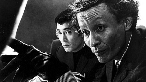 The sinister Dr. Mizorogi (Hideyo Amamoto, right) poses a major threat to the seemingly clueless Shinji (Tatsuya Nakadai) in The Age of Assassins (1967).