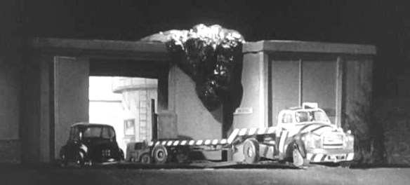 SYNOPSIS: During an army training maneuver on the Scottish moors, a fissure in the earth releases something from the depths below which results in the death of one soldier and severely burns another while registering high readings on a Geiger counter. Dr. Adam Royston (Dean Jagger), an American scientist whose field of study is atomic energy, is called in to investigate. What he discovers is a large mass of primordial ooze that feeds on radioactivity and is growing larger and larger from its nightly raids on the surrounding countryside. Royston, in his attempts to stop and contain this deadly creature, finds himself caught up in a bureaucratic power struggle between John Eliott (Edward Chapman), the head of an atomic research center, and Mac McGill (Leo McKern), a representative from the United Kingdom Atomic Energy Commission. When the creature begins to grow larger in size and threaten more lives in its absorption of energy, Royston with assistance from the army, attempts to destabilize and destroy it in one last desperate ploy, which may or may not work.