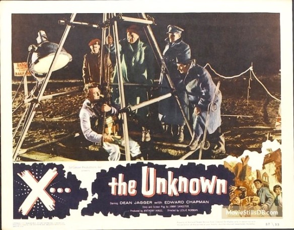 It was also well received in the U.S., where it was distributed by Warner Bros. after an earlier deal with RKO never materialized. Variety noted that it was “a highly imaginative and fanciful meller….There’s little letup in the action, and suspense angles are kept constantly to the forefront.” A more contemporary review of X the Unknown in the TimeOut Film Guide by David Pirie places the film in a proper context: “1956 – the year of the Suez crisis, a sharp increase in the crime rate, and uneasy preparation for WWIII – spawned a series of gloomy thrillers (both in Britain and in America) in which the weight of the military is mobilised against various alien organisms from the bowels of the earth or outer space…in a lot of ways it [X the Unknown] communicates the atmosphere of Britain in the late ’50s more effectively than the most earnest social document.”