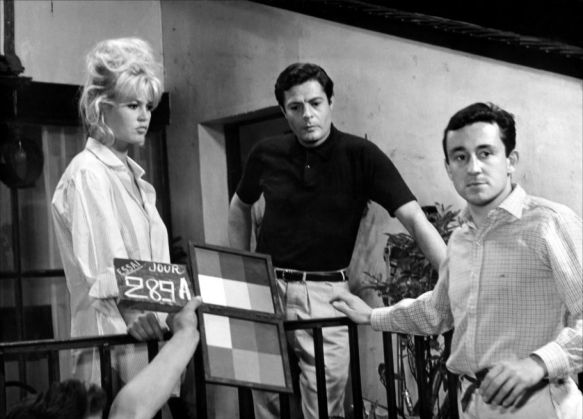 On the set of A Very Private Affair (1962) with Brigitte Bardot, co-star Marcello Mastroianni (center) and director Louis Malle.