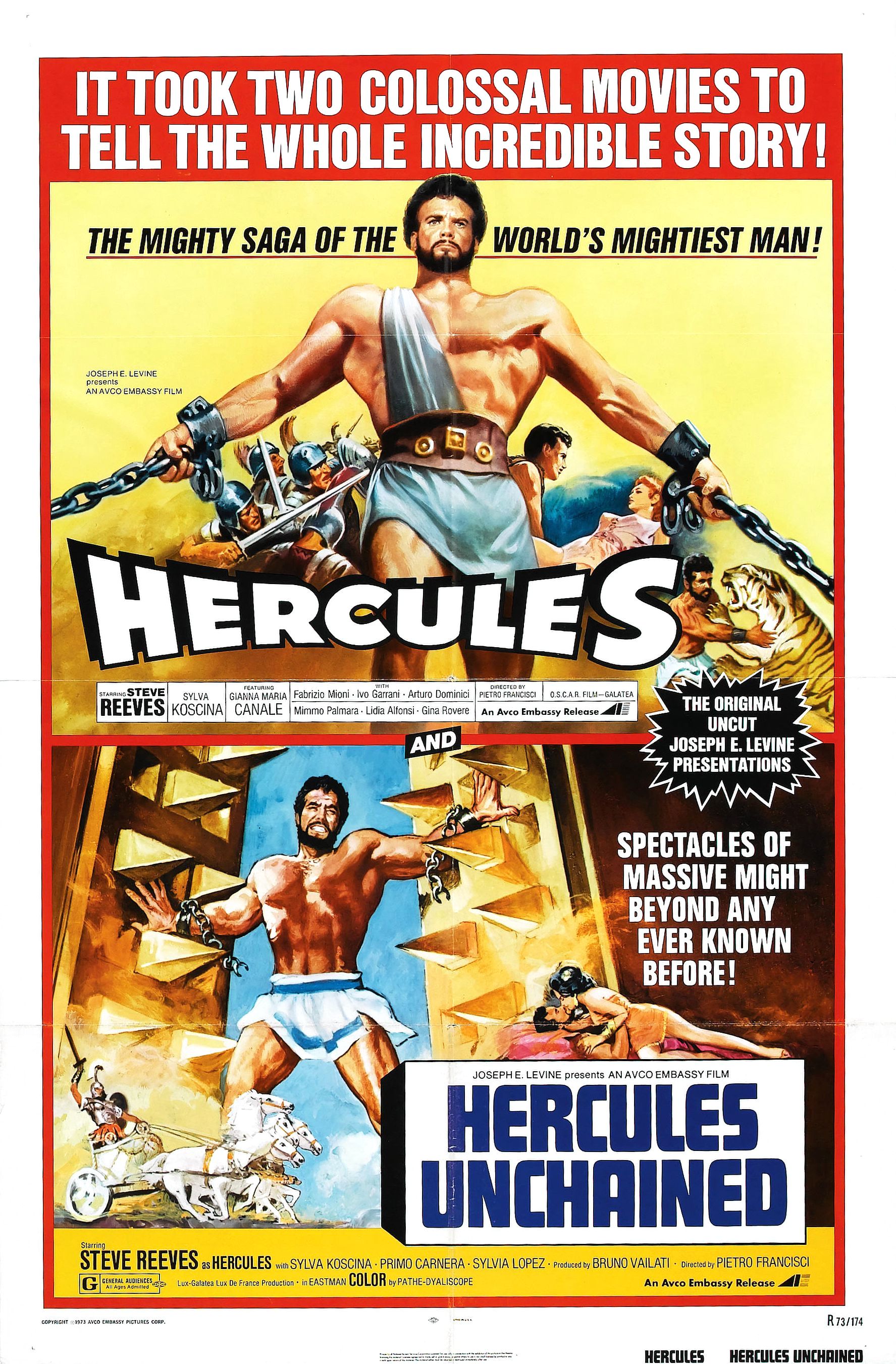 Film posters for Hercules (1958) and Hercules Unchained (1959) Published September 26, 2017 at 1775 × 2702 in Vintage Peplum