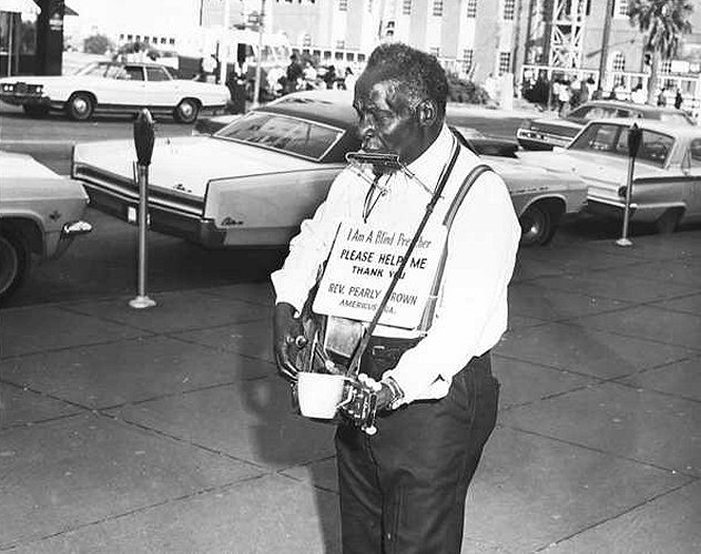 Rev. Pearly Brown Published October 7, 2017 at 632 × 500 in Missing in Action: William Klein’s Quirky Portrait of Little Richard Macon street musician Rev. Pearly Brown