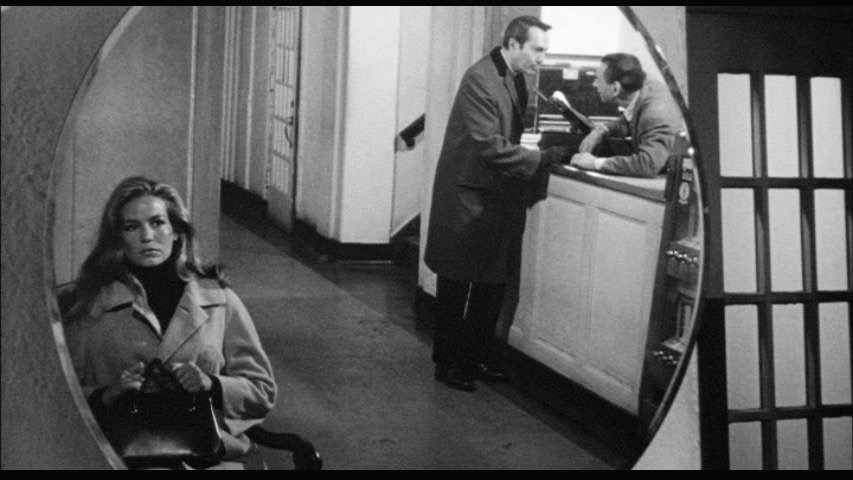 Mickey One (1965) is one of the more unusual Hollywood “art film” experiments of the mid-sixties. (Alexandra Stewart & Hurd Hatfield (standing) are seen in the photo.)