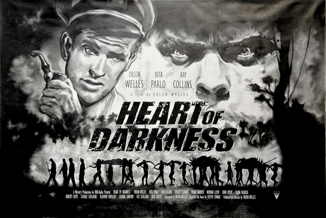Heart of Darkness Published January 1, 2018 at 650 × 434 in In Conversation with Peter Bogdanovich A mockup poster for Orson Welles’ never completed project, Heart of Darkness.