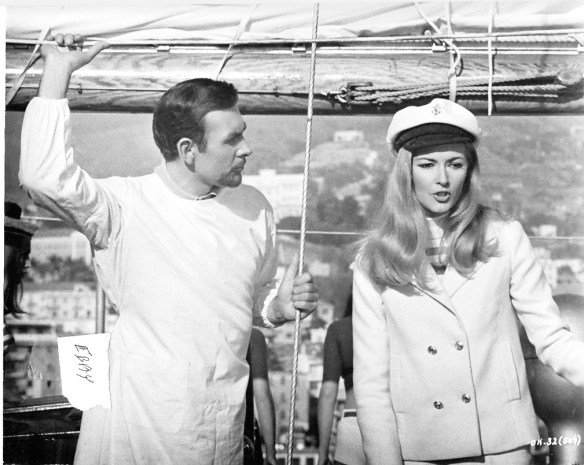 There is also plenty of eye candy on display from Daniela Bianchi, modeling an array of over-the-top outfits, and assorted international starlets such as Celi’s crew of female assistants dressed in matching sailor outfits. Best of all, Lois Maxwell gets to play a much more aggressive, take-charge version of Miss Moneypenny, emerging from tropical foliage at one point with machine-gun blazing – Go, girl!