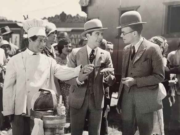 The real focus of the film though is “Smiley” Johnson (Joe Cook), the fast-talking manager of the Greater John T. Rainey Circus and his never-ending schemes and hustles to keep the circus operational and true to its promise to offer two shows a day, rain or shine. Dalton (Alan Roscoe), the ringmaster, proves to be the villain of the piece, working secretly to foil Smiley’s efforts. Meanwhile, a befuddled investor, Amos K. Shrewsbury (Tom Howard) and Dave (Dave Chasen), a food vendor and roustabout, provide comic relief.