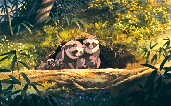 Pom Poko combines satire, tragedy, fantasy and philosophical ponderings in equal measures, resulting in an entertaining, thought-provoking experience for children and adults alike while avoiding a formulaic happy ending that characterizes the typical Disney product. What’s it about? Well, on the surface, it’s the tale of a mythical race of raccoon dogs – called tanuki – whose habitant becomes threatened by urban development. Tanuki are popular figures in Japanese folklore but also real woodland animals in Japan and are not related to raccoons; they are in the Canidae family along with wolves and foxes.