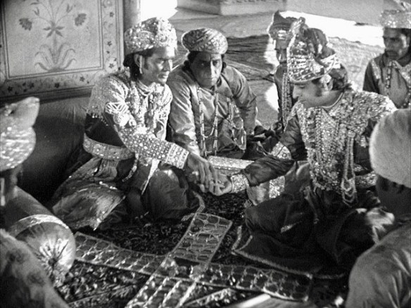 Osten’s attention to visual detail is often remarkably subtle but effective in transforming inanimate objects like Ranjit’s stolen dagger and Sohat’s trick dice into supporting players in the royal drama. He skillfully uses montages to convey opulence and exoticism in two atmospheric segments that frame the wedding feast of Ranjit and Sunita. The first introduces an eccentric parade of jugglers, fire-eaters, sword swallowers, snake charmers, and other performers, while the second depicts the elaborate preparation of the main event with scores of metalworkers, weavers, florists, embroiders, and elephant-decorators frantically working in tandem.