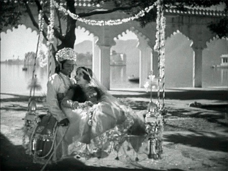 King Ranjit (Charu Roy) and his bride to be Sunita (Seeta Devi) enjoy the calm before the storm in the 1929 epic, A Throw of Dice.