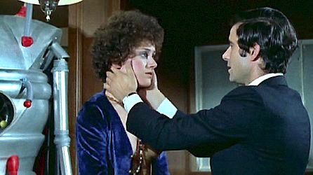 The Bloodstained Lawn (1973) Published June 30, 2018 at 446 × 250 in Vampire Machine Max’s unidentified girlfriend (played by Daniela Caroli) is comforted by undercover police detective (matinee idol Nino Castelnuovo) in Riccardo Ghione’s The Bloodstained Lawn (1973).