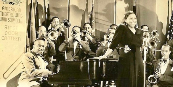 Count Basie (far left) and His Orchestra with vocalist Ethel Waters are one of the musical highlights in Stage Door Canteen (1943).