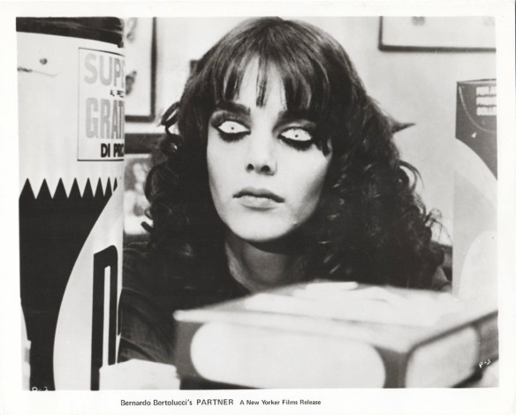 Tina Aumont appears in Bernardo Bertolucci’s Partner (1968), a free form adaption of Dostoevsky’s novel The Double.