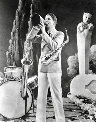 Like Ted, Rudy Vallee also started his own band while attending college (at Yale) and played the saxophone (and the clarinet too). In the beginning he didn’t really want to be a singer but discovered that most club owners at that time preferred bands with vocalists over traditional instrumental groups. Reputedly his bandmates tried to discourage him from singing – his voice was thin and not distinctive – but he persisted and became an accomplished singer of ballads and love songs.