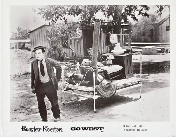 The results were worth it though because Go West is probably Keaton’s most austere and offbeat feature film and gets better with each viewing. Film historian David Thomson calls Go West, “a masterpiece of the moving camera,” and many Keaton scholars agree that the climactic cattle drive from the train depot in Pasadena through the downtown streets of Los Angeles and into the stockyards is one of the silent comedian’s greatest sequences in his films.