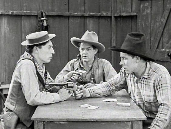 Buster Keaton confirms his reputation as “The Great Stone Face” in a tense gambling scene with armed players in Go West (1925).
