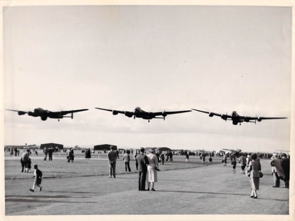 As for Todd’s own scenes during the flying sequences, he recalled, “My first few days in the studios were spent strapped into the pilot’s seat in a Lancaster fuselage…The greatest difficulty for me and for other crew members who had to be photographed in the aircraft was lack of space. The Lancaster fuselage was cramped and bristling with instrumentation at any time, but with the addition of the camera, lights, cables, microphones, camera and sound crews there was scarcely room to breathe. And it was dreadfully hot, too, as we sweated in our helmets and Mae West jackets. It was I, perforce, who spent most of the time in these conditions. Once I was in my seat, there was no means of getting out again until all the equipment had been removed, so for days on end I was strapped in by about 8:15 am, released for lunch and re-incarcerated from about 2 pm until the end of shooting at 6 pm. The needs of nature occasionally caused total chaos and a lengthy hold-up.”