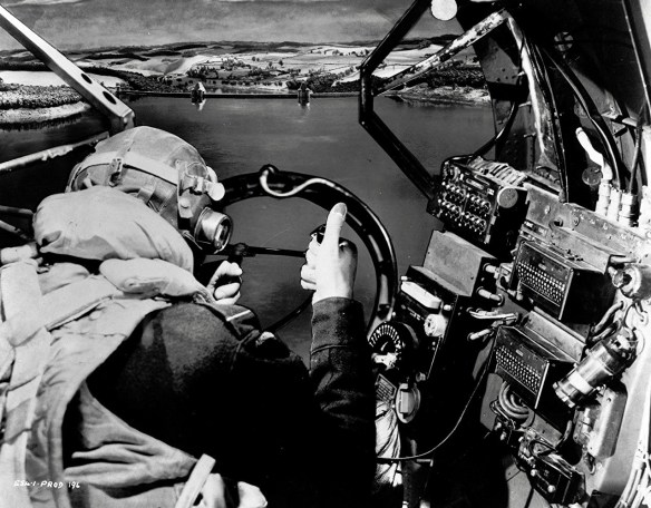 Richard Todd prepares to attack key Nazi targets in the British aviation war drama, The Dam Busters (1955).