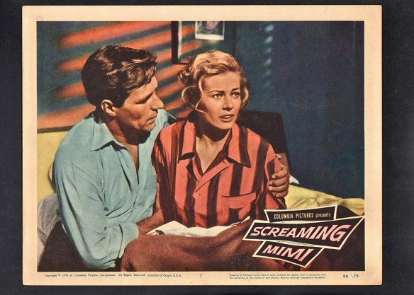 Fellows, on the other hand, was a frequent collaborator with John Wayne and together they produced seven movies together including the 1954 box office hit The High and the Mighty and the William Wellman Western, Track of the Cat [1954]. Screaming Mimi represented an odd detour for both producers and was barely noticed at all by moviegoers since it was consigned to the bottom of double bills and released on the grindhouse and drive-in circuits.