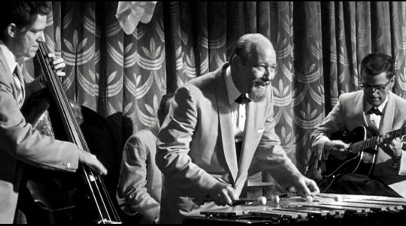 The West Coast jazz group the Red Norvo Trio are featured in Screaming Mimi (1958). (Red Norvo is in the center).