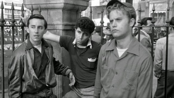 Paul Mazursky (left) played a delinquent in Blackboard Jungle (1955), co-starring Glenn Ford and Vic Morrow (seen on right).