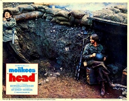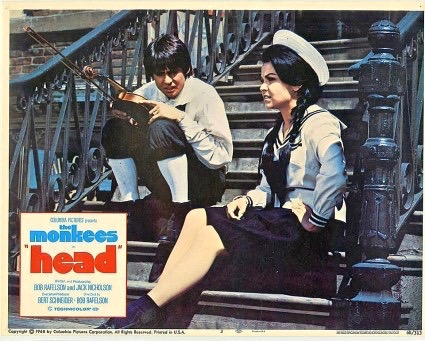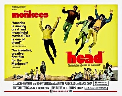 The Monkees star in their first and only feature film, Head (1968), directed by Bob Rafelson and written by Jack Nicholson & Rafelson & The Monkees (uncredited).
