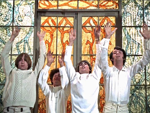 The Monkees reveal the puppeteers behind their strings in the psychedelic fantasy satire Head (1968).