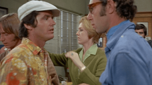 Peter Tork can be heard whistling the chorus to the Beatles song, “Strawberry Fields Forever” in one scene where he enters a bathroom.