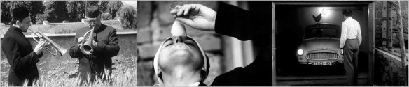 To give you some idea of the film’s simple but spontaneous narrative style (photographed by the great Czech cinematographer Miroslav Ondricek, is a scene where a group of musicians clad in mourning clothes play a funeral march on the way to a service. They pause at one point along the country road to take a rest and several of the men wander off to relieve themselves on the stucco wall of a farmer’s shed. The camera then pans across to a fellow musician who has spotted something in the field nearby and follows him as he wanders over to investigate. We see him approach what looks like two tombstones leaning against each other in the sun. As he draws closer, the tombstones collapse, revealing themselves as very white legs, and a large woman in a bathing suit rises up. Indignant that her sunbathing has been interrupted, she stomps off.