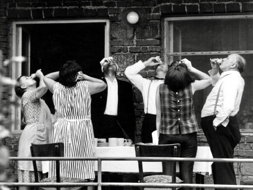 A social getogether is celebrated with a toast of some homemade eggnog that is so thick it barely flows in Ivan Passer’s Intimate Lighting (1965).