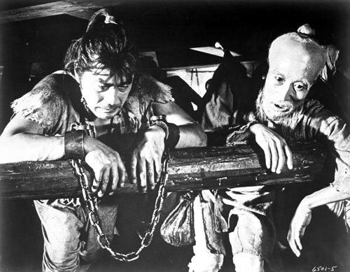 Toshiro Mifune (left) plays a captured pirate who was renamed Sinbad for the American release of Samurai Pirate aka The Lost World of Sinbad (1963).