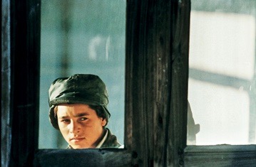 A Russian youth (Aleksey Kravchenko) is captured by German troops in the harrowing WWII drama Come and See (1985), directed by Elem Klimov.