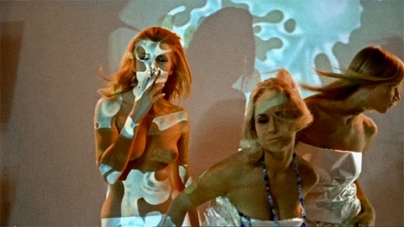 It must be said that Negresco is the sort of film that works just fine with the sound turned off. You could use it as a visual background/video wallpaper for your next soiree and provide your own 60s mix tape for musical accompaniment. In fact, there are two songs from the Negresco soundtrack (courtesy of composer Klaus Doldinger) that belong on any playlist from 1968. One is the bombastic theme song sung by Swiss pop star Hardy Hepp and sounds inspired by John Barry’s Goldfinger score. The other is a Euro lounge music delight called “Tribute to Otis Redding” attributed to Paul Nero Sounds (an alias for Klaus Doldinger) which underscores a groovy pot party which degenerates into a S&M fantasy.