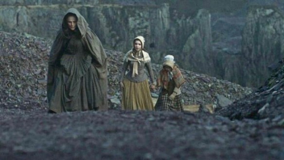 The film, which is set in Snowdonia, Wales and was filmed there, takes place around 1855 during the industrial era. Elen (Maxine Peake) and her two daughters are the few remaining inhabitants of a small farming community that has dwindled over the years due to deaths, inclement weather or Mr. Wynne (Mark Lewis Jones), the owner of the local quarry which has become the village’s main source of work and income. Wynne has threatened or forced other farmers to sell their land and move away – maybe he has even murdered some – but Elen continues to hold out hope that her husband will return from the war and save the farm.