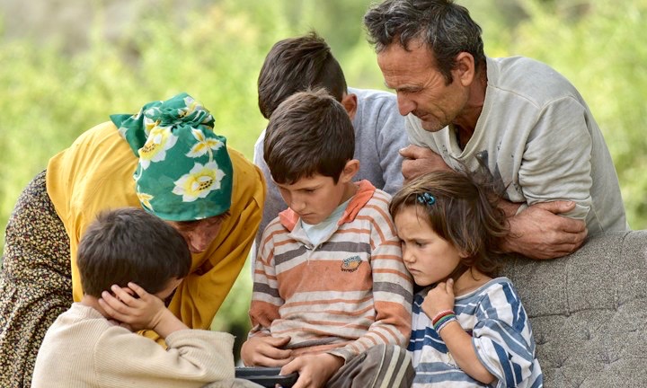 Honeyland (2019) Published September 4, 2019 at 720 × 432 in The Macedonian Beekeeper Hatidze (in scarf on left) instructs Hussein (upper right) and his children on the art of beekeeping in Honeyland (2019).