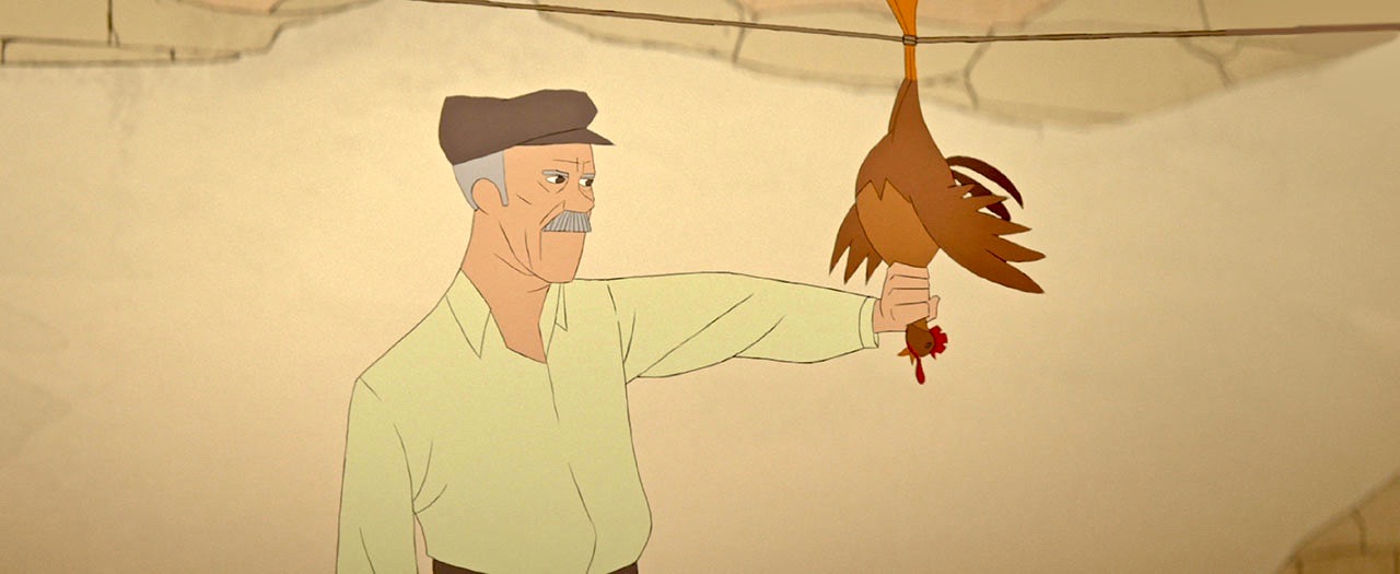 Bunuel in the Labyrinth of the Turtles (2018) Published September 15, 2019 at 1280 × 525 in From Graphic Novel to Animated Feature: The Making of Luis Bunuel’s Las Hurdes Director Luis Bunuel instructs a villager to behead a chicken with his bare hands in the animated feature Bunuel in the Labyrinth of the Turtles (2018).