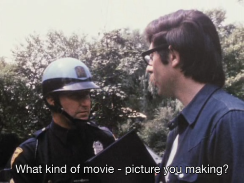 Symbiopsychotaxiplasm Take One (1968) Published November 15, 2019 at 500 × 375 in William Greaves: Pushing Boundaries The loose cinema verite nature of Symbiopsychotaxiplasm Take One (1968) is evident in this sequence where a New York cop questions a film crew member about their movie.