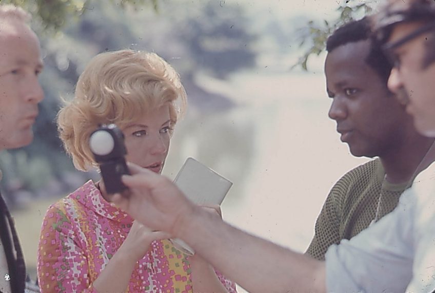 Symbiopsychotaxiplasm Take One (1968) Published November 15, 2019 at 1920 × 1297 in William Greaves: Pushing Boundaries William Greaves (second from right) observes his actors while a light meter reading is taken in Symbiopsychotaxiplasm Take One (1968).