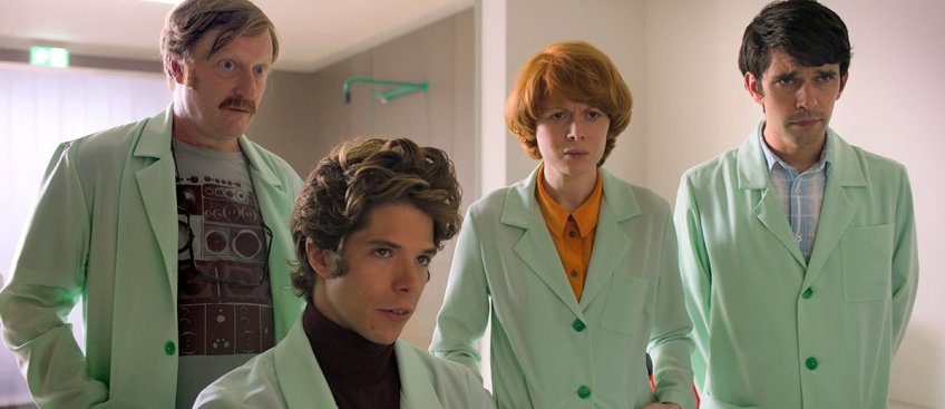 Little Joe (2019) Published December 2, 2019 at 1200 × 520 in Happiness is a Thing Called Little Joe Laboratory workers (from left) David Wilmot, Phenix Brossard, Emily Beecham and Ben Whislaw study the effects of botany bio-engineering on a monitor in Little Joe (2019).