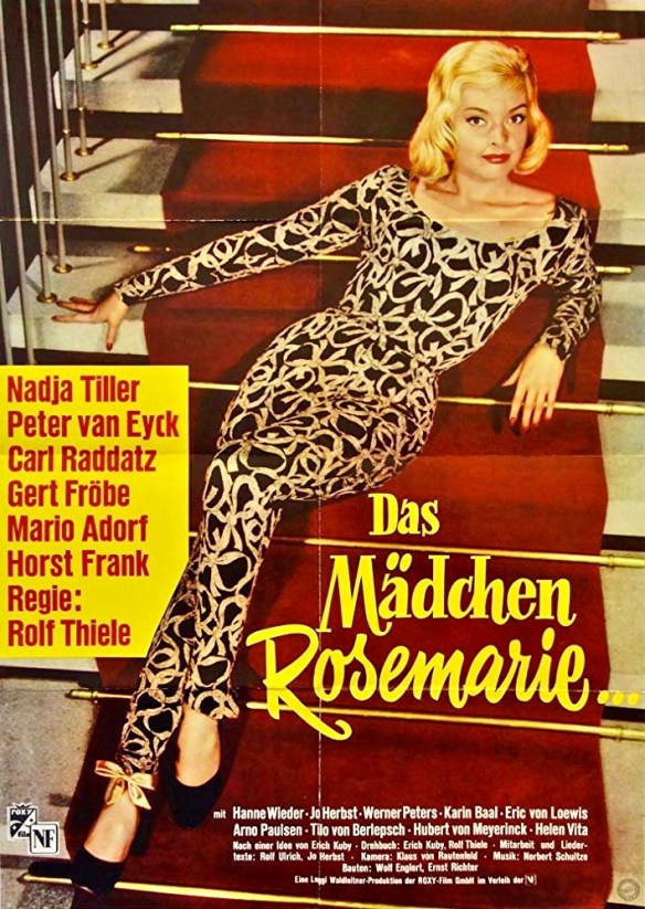 In fact, with the exception of Rosemary, most of Rolf Thiele’s work is not available domestically on any format. This is a real loss for classic cinema because Thiele was a key German director between the late fifties and mid-sixties. Unfortunately his later work often veered off into soft core exploitation like Grimm’s Fairy Tales for Adults (1969) and Sex Olympics (1972).