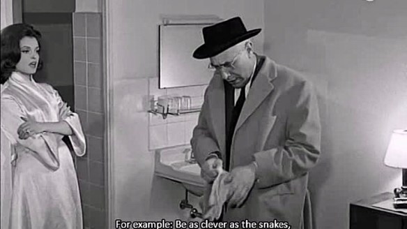 Marion (Nadja Tiller) and her mentor, Dr. Kampfer (Charles Regnier) in the 1963 critique of Germany’s economic miracle, Moral 63.