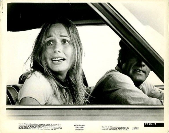 Sally Kellerman plays a drifter who believes in UFO conspiracy theories in the road movie comedy, Slither (1973), co-starring James Caan.
