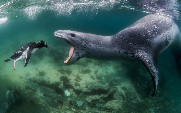 A fateful encounter between a penguin and a leopard seal is one of the more famous photographs of Amos Nachoum (as featured in Picture of His Life).